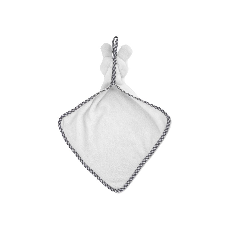 Serviette bébé en peluche en polyester velours avec lapin sur le dessus. 180gr/m².